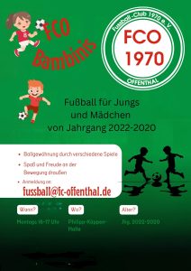 NEWS: Unsere Bambinis trainieren auf dem Sportplatz des FCO – bei Interesse unter fussball@fc-offenthal.de melden.
